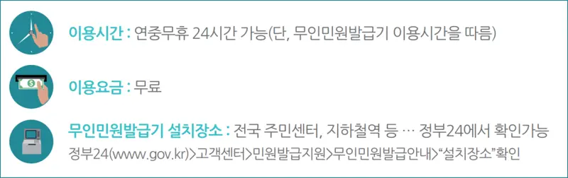 2. 오프라인 발급방법 : 동사무소, 주민센터, 지하철 등에 설치된 무인민원 발급기 이용
