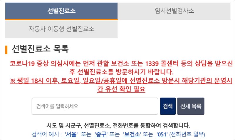✅ 서울 강남 분당 등 전국 코로나 검사 병원 찾기