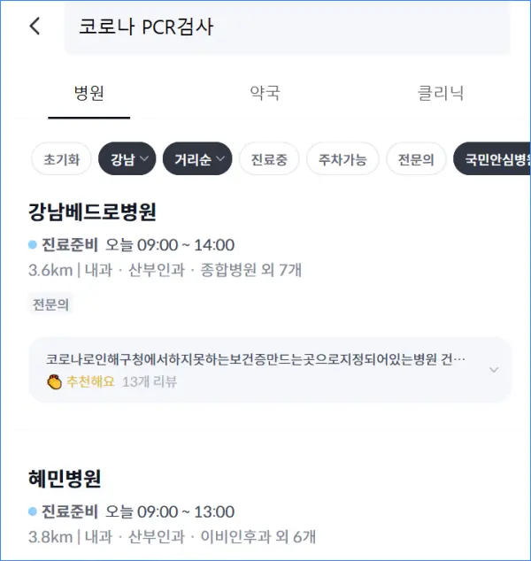 2. 해외 출국용 pcr 코로나 검사 병원 찾기